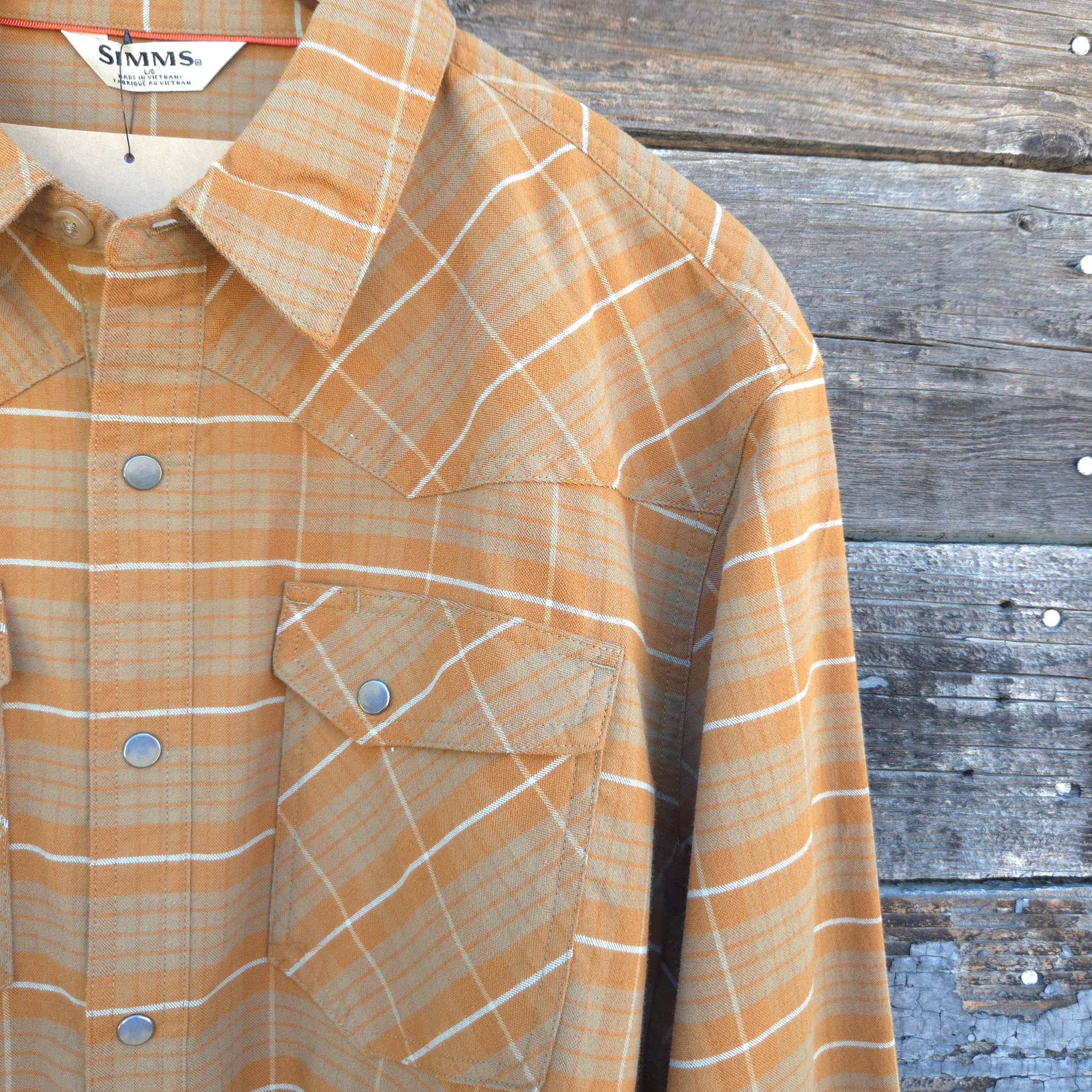 Simms Brackett Flannel Long Sleeved Shirt in Cobia Plaid.