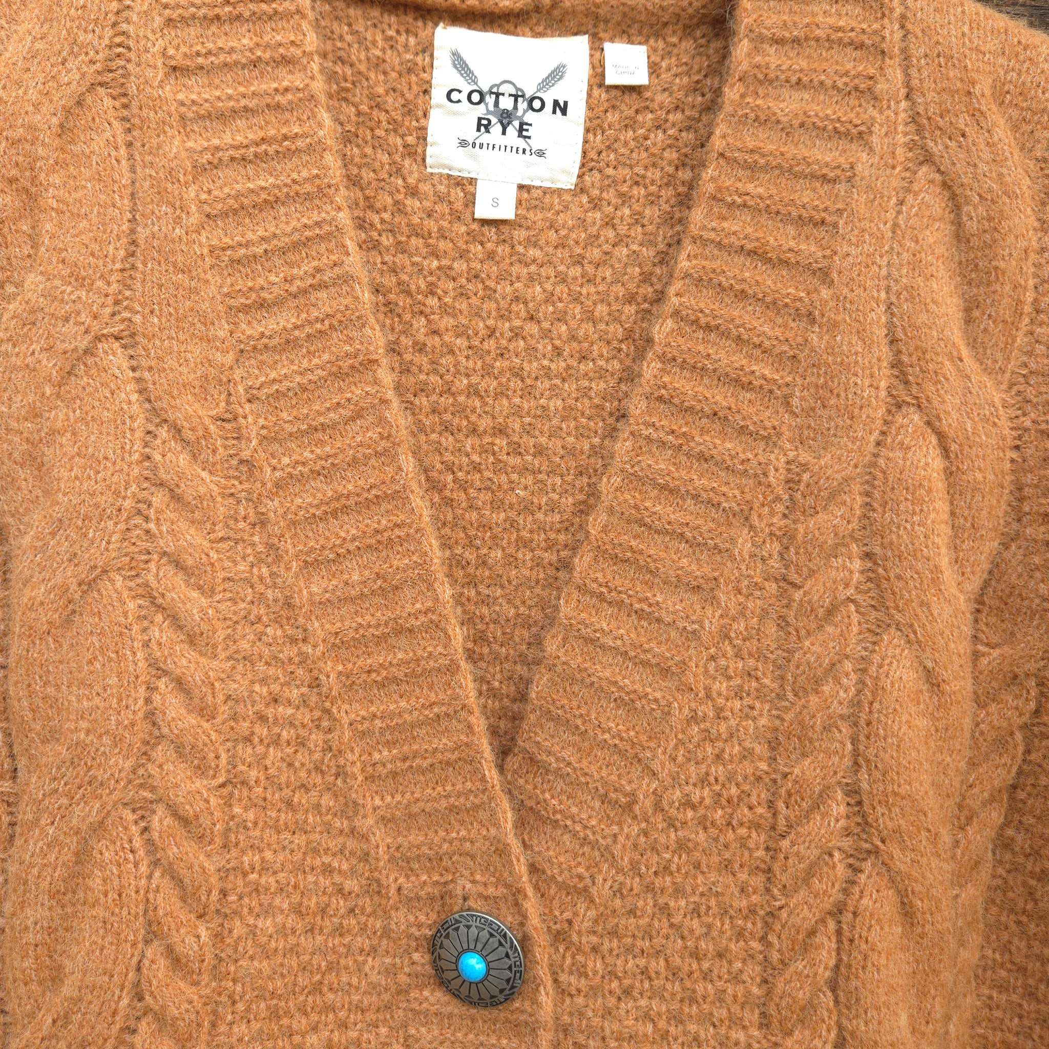 Cotton and Rye Women's Brown Cable Knit, Button-Up Sweater Vest.
