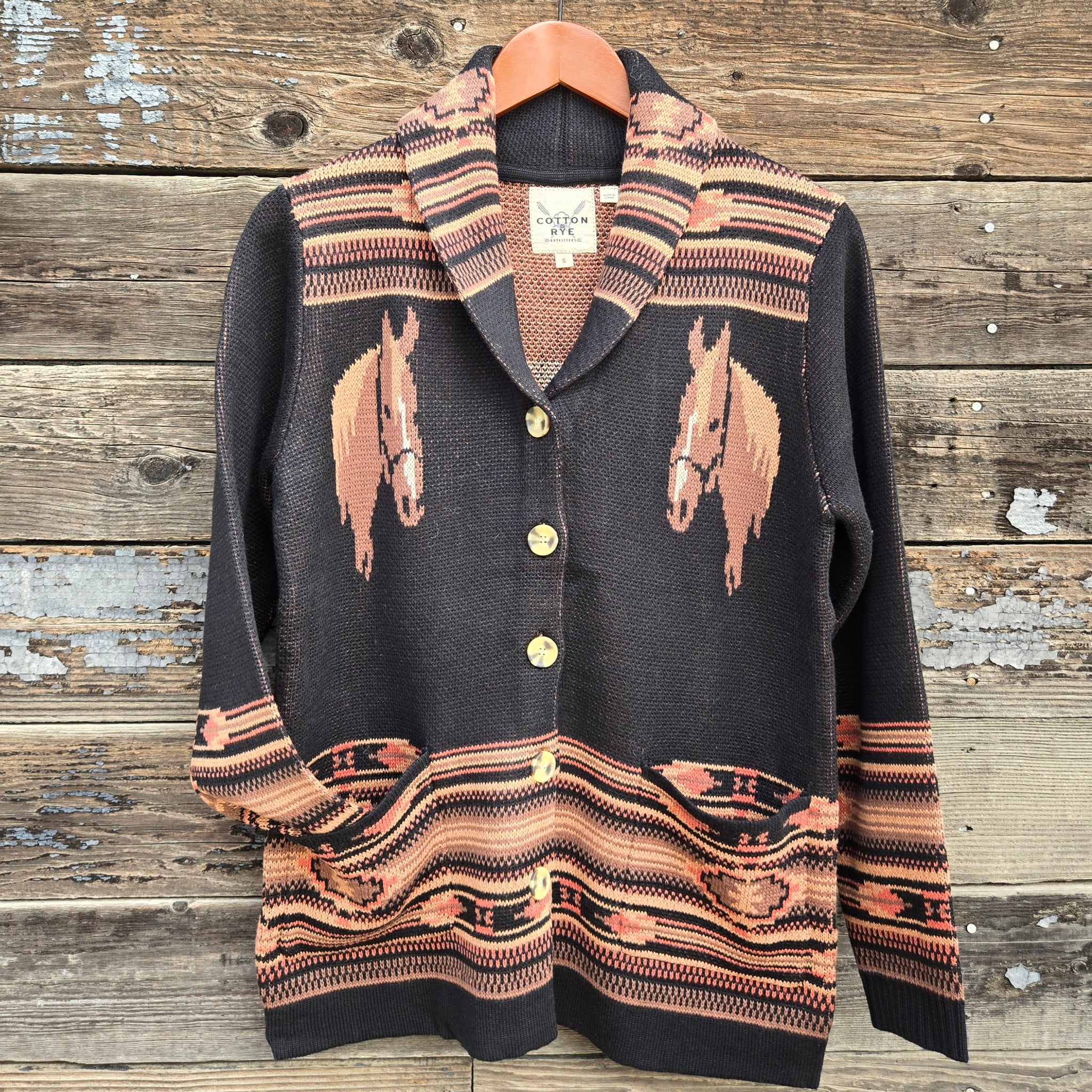 Cotton and Rye - Vintage Horse and Horseshoe Cardigan - Black