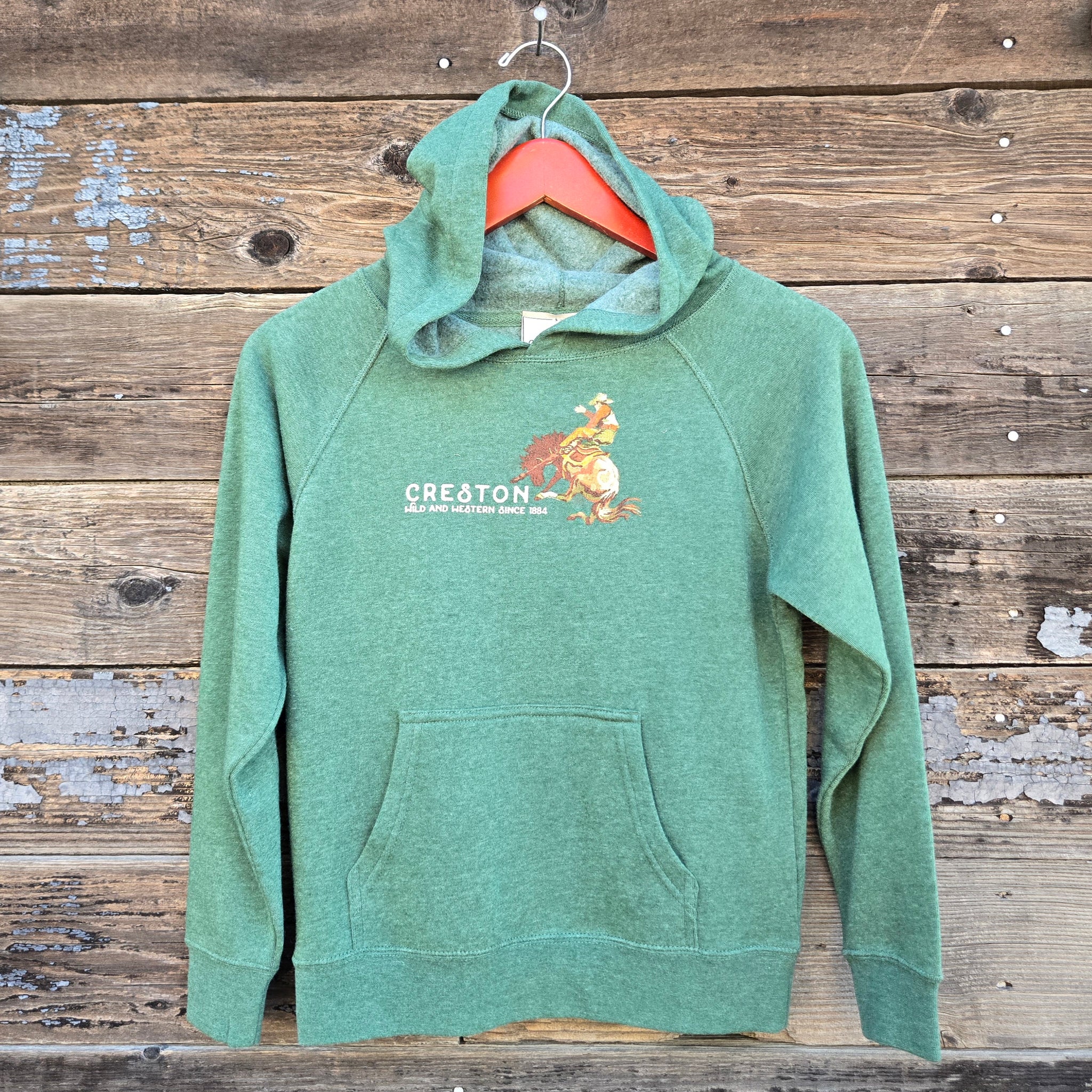 Creston Kid's Hoodie in our exclusive Bronc Buster art, designed by Lauren Varian, Varian Graphic Design.