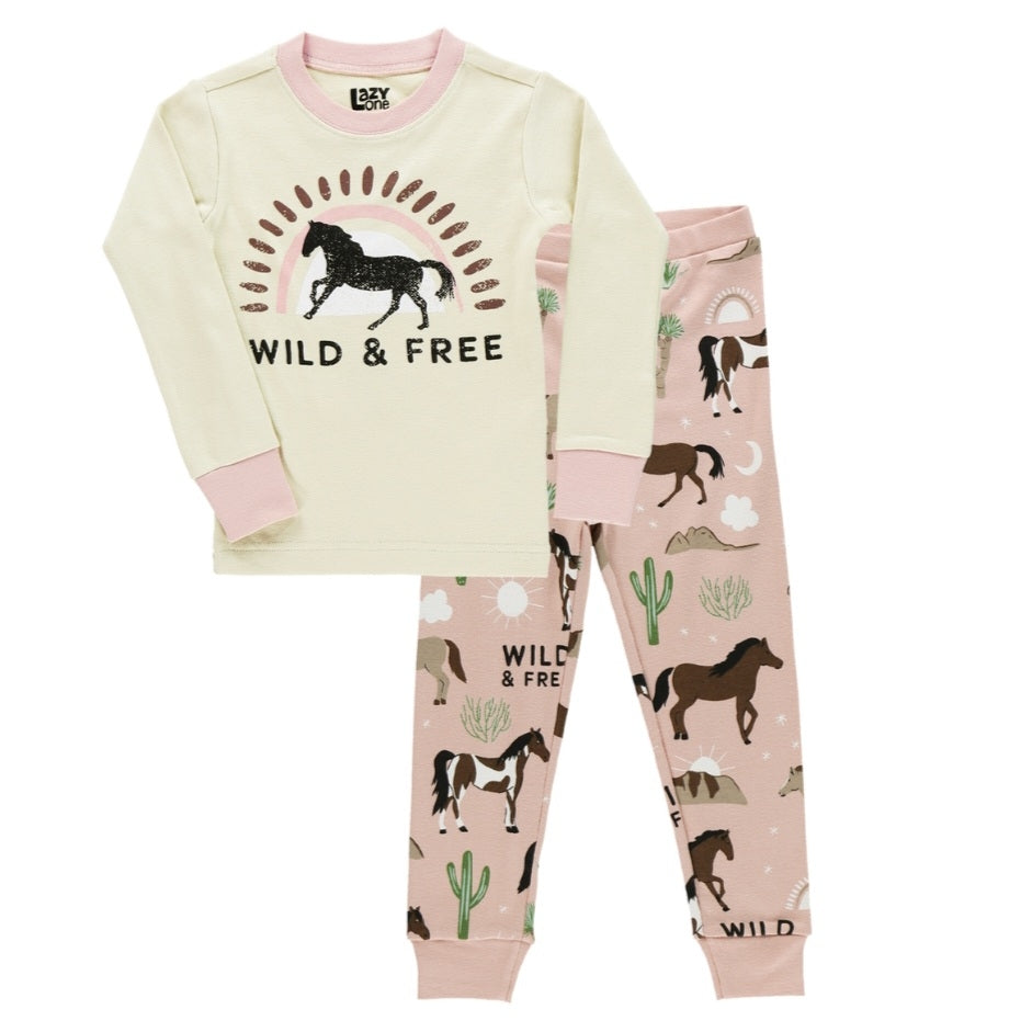 No matter how wild your little ones might during they day they can rest easy with our Wild & Free Long sleeve pajamas. These pajamas feature a cute horse design that any kid would love. Our kids pajamas are made with 100% combed cotton making them soft, comfy and perfect to sleep in.