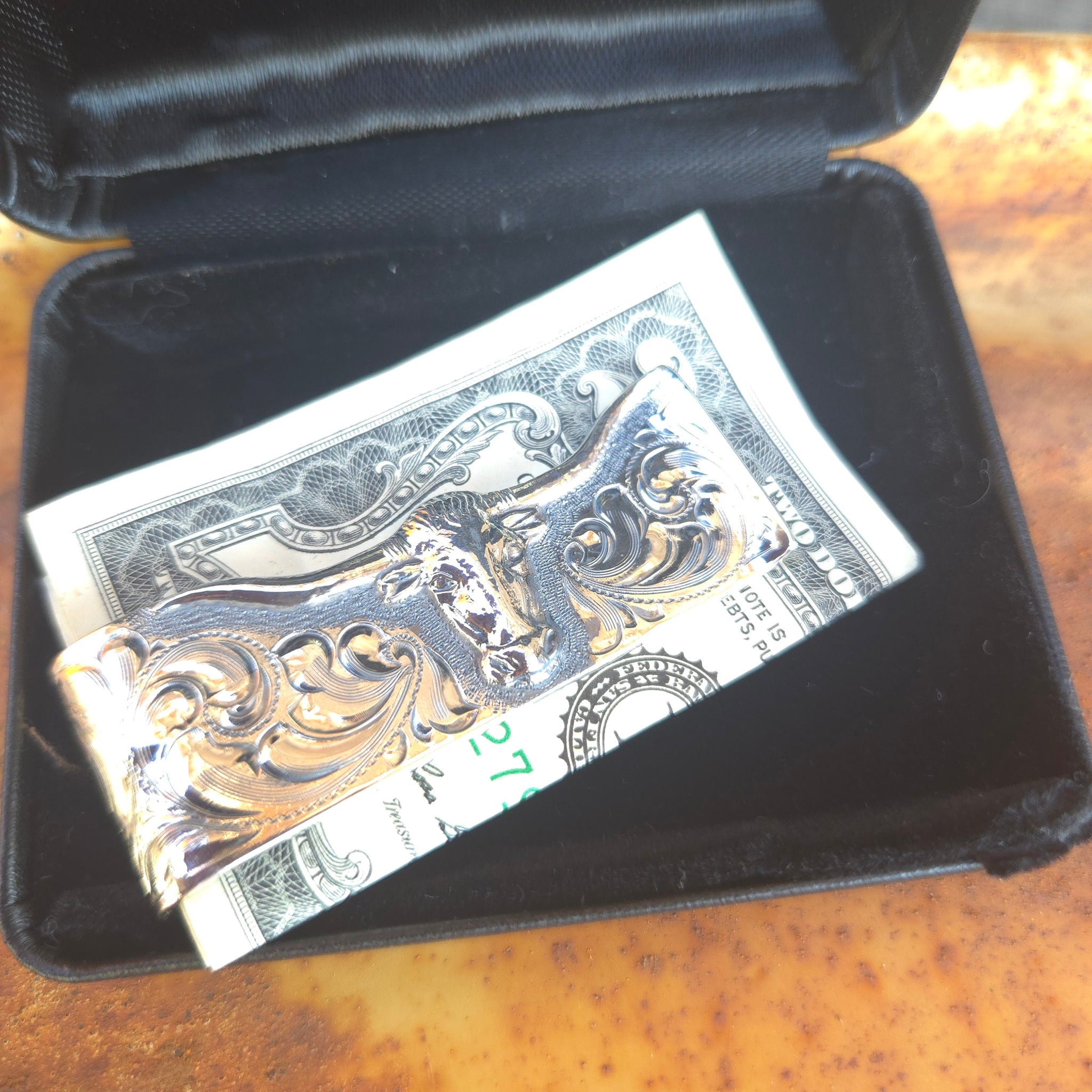 Vogt Silversmiths Silver Silhouetted Longhorn Money Clip in all Sterling Silver.